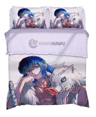 Inosuke Hashibira Demon Slayer Kimetsu no Yaiba Anime Bettset Premium Mikrofaser Weich