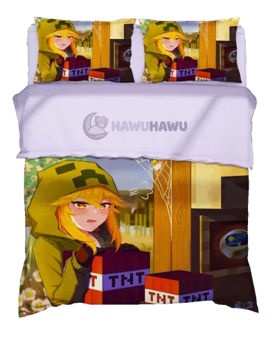 Creeper Minecraft Gamer Bettbezug Waifu Bettset Zocker-Zimmer Dekoration