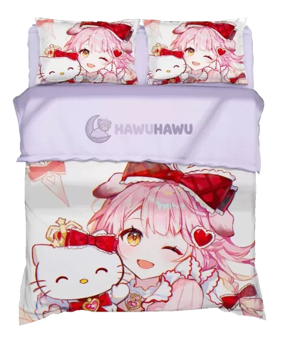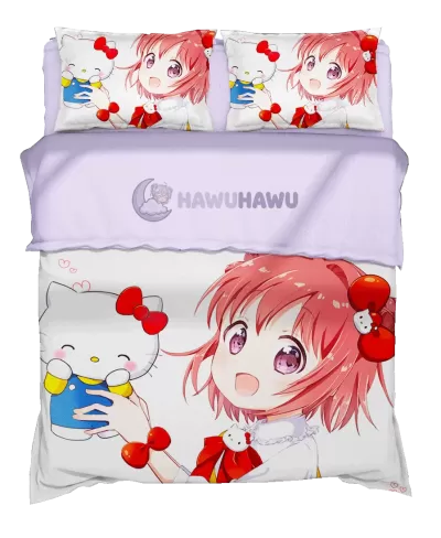 Hello Kitty&Akaza Akari Yuru Yuri Anime Bettbezug Fan-Art Edition HD