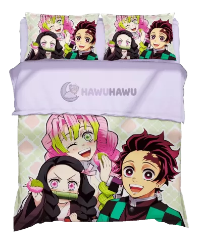 Kamado Nezuko&Kamado Tanjirou&Kanroji Mitsuri Demon Slayer: Kimetsu no Yaiba Anime Bettbezug Fan-Art Edition HD