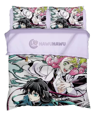 Muichiro Tokito&Mitsuri Kanroji Demon Slayer: Kimetsu no Yaiba Bettwäsche-Set Farbecht & Hochauflösend