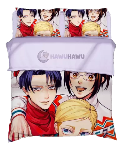 Levi Ackerman&Hange Zoë&Erwin Smith Attack on Titan Anime Bettset Premium Mikrofaser Weich