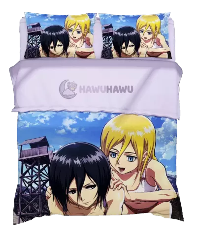 Mikasa Ackerman&Krista Lenz Attack on Titan Japanische Bettwäsche Manga Bettwäsche Ultra-Scharfe Details