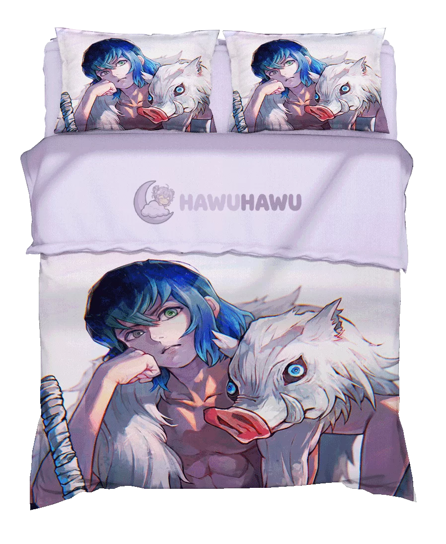 Inosuke Hashibira Demon Slayer Kimetsu no Yaiba Anime Bettset Premium Mikrofaser Weich