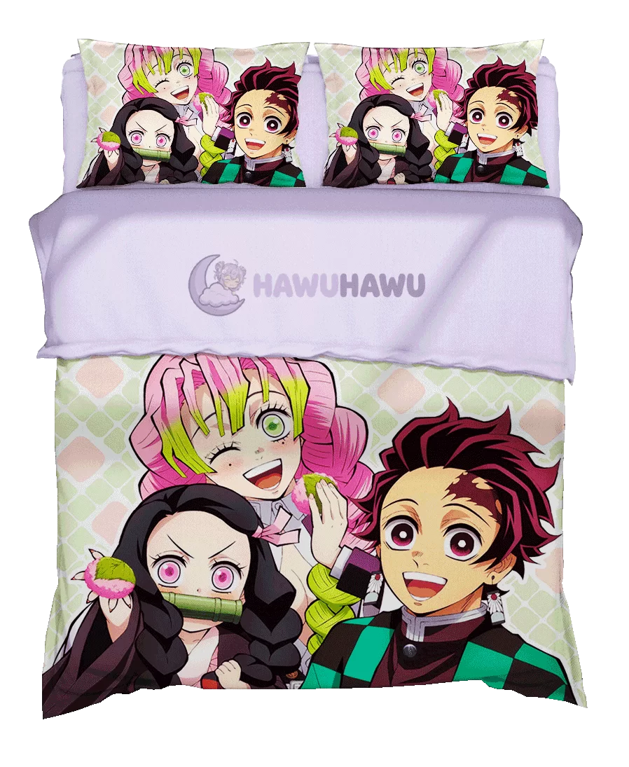 • Kamado Nezuko&Kamado Tanjirou&Kanroji Mitsuri Demon Slayer: Kimetsu no Yaiba Anime Bettbezug Fan-Art Edition HD